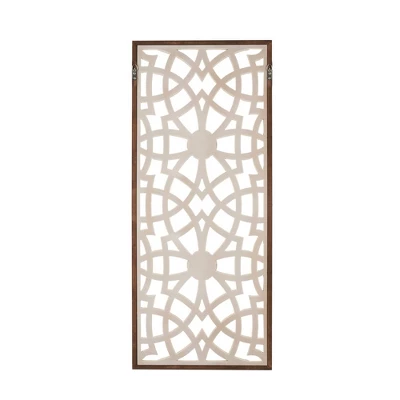 The Madison Park Damask Wood Panel Two-tone Geometric Wall Decor offers a beautiful farmhouse style update to your home decor. This wood panel wall art features a carved fretwork design on the MDF back that creates an elegant look. A solid wood frame completes the wall decor, while two D-rings on the back make it easy to hang on any wall. Measuring 15.74”x37.75”, this carved wall panel provides a unique and charming accent to any room in your home.