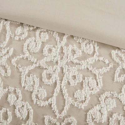 Give your bedroom a cozy shabby chic look with the Amber 4 Piece Tufted Cotton Comforter Set. The cotton chenille comforter and shams flaunt a tufted floral medallion motif, creating a charming farmhouse look. A square decorative pillow adds a rich, textural touch to complete the comforter set. Hypoallergenic polyester filling in the comforter and decorative pillow provides exceptional warmth and comfort. Made with a 100% cotton face and reverse, this tufted cotton comforter set offers a shabby chic update for your bedroom and is machine washable for easy care. Due to the nature of the chenille fabric, some shedding will occur naturally in the first 3-4 washes.