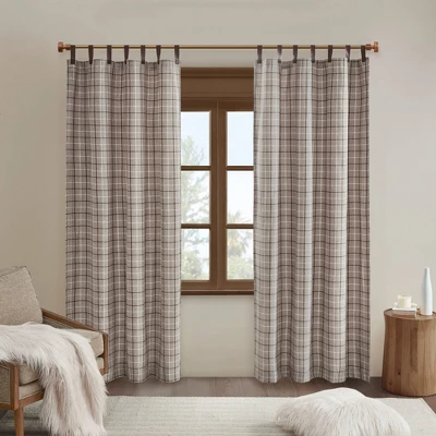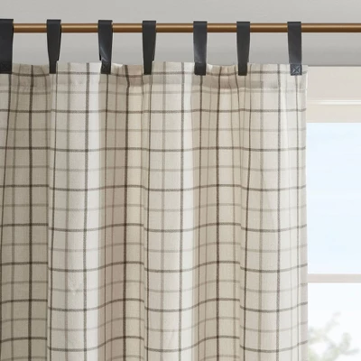 - Faux leather tab top yarn dyed plaid weave window curtain panels