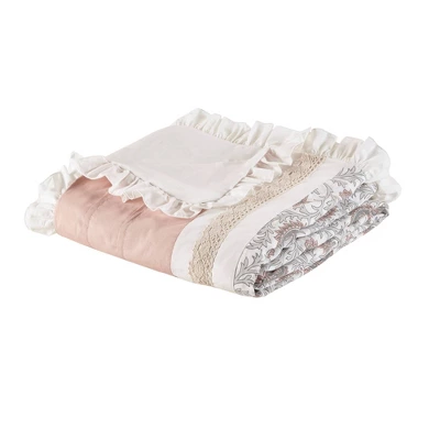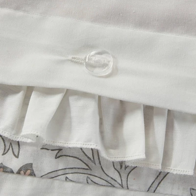The Stella Cotton Percale Duvet Cover Set offers a shabby chic update to your bedroom decor. A paisley print is featured on the cotton duvet cover with pintucked fabric separated by lace taping embellishments. Around the edge, a ruched flange adds a graceful touch, for a charming cottage look. Matching shams mirror the design of the duvet cover, while 2 solid Euro shams complement the top of the bed. The 3 decorative pillows and a solid bedskirt complete this farmhouse duvet cover set. This bedding set is also OEKO-TEX certified, meaning it does not contain any harmful substances or chemicals to ensure quality comfort and wellness. A button closure secures a comforter insert within the duvet cover and inside corner ties prevent it from shifting (insert is NOT included). A coordinating shower curtain is available and sold separately.