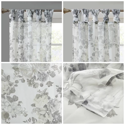 The Fleur Printed Floral Twist Tab Top Voile Sheer brings a soft and romantic touch to your home decor. This voile sheer curtain panel features a beautiful a neutral printed floral on a black ground for a rich and stylish contrast, while the lightweight fabric adds a delicate and airy touch. Our twist tab top finish allows you to create a DIY design for a unique and stylish touch to your window decor; assembly required for twist tabs – printed directions are included in packaging and video support also available onsite. In addtion, this voile sheer is also OEKO-TEX certified, meaning it does not contain any harmful substances or chemicals, ensuring quality comfort and wellness. Each panel is sold separately and machine washable for easy care; Fits up to a 2″ diameter curtain rod. These curtains are perfect on its own as a decorative sheer or even better when layered with either coordinating scarf or our Madison Park Emilia solid twist tab panels for a more intricate update!
