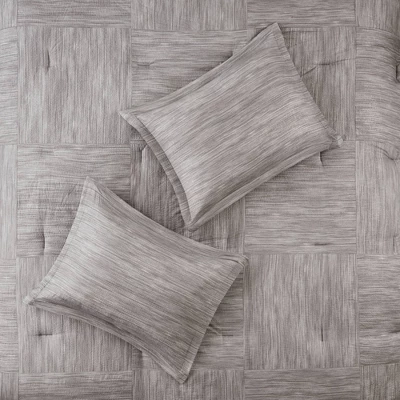 The Kelan 7 Piece Printed Seersucker Comforter Set offers a chic modern update to your bedroom. This comforter set features a pieced, textured printed seersucker weave design for an updated transitional allure. Two matching shams repeat the style of the comforter, while two square pillows and one oblong decorative pillow add dimension and comfort to the bed. A solid bedskirt adds the finishing touch to complete the contemporary comforter set. Hypoallergenic polyester filling in the comforter and the pillows provides exceptional warmth and comfort. Transform your bedroom decor with the trendy style of this printed seersucker comforter set. Machine washable for easy care.