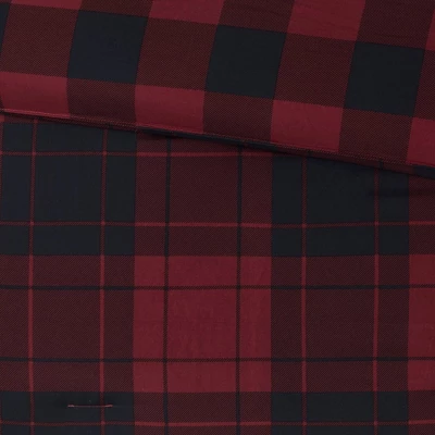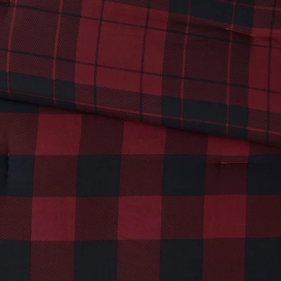 Changing up the look of your bedroom while maintaining a consistent feel is easy with the Rochester Reversible Complete Bedding Set. This bedding set includes everything you need to pull together the look of your bed — a comforter, flat sheet, fitted sheet, pillowcases and shams, and even a decorative pillow and bedskirt to add the finishing touches. The comforter has a rustic look with its classic black and red buffalo check pattern, and can be reversed to display a gray and white check print with a buffalo check border for a different yet cohesive look. The sheets and pillowcases share the gray and white check pattern, while the shams continue the black and red motif. A plain black bedskirt and a black decorative pillow with simple white button detailing perfectly complement both patterns to bring the whole look together, regardless of which side of the comforter you have showing.