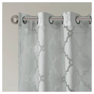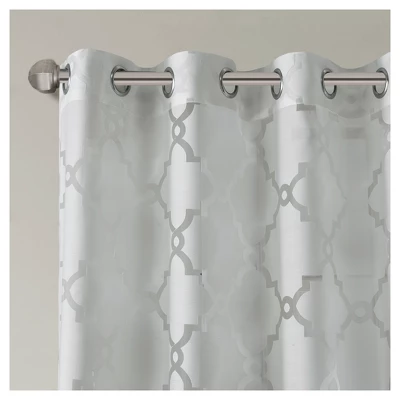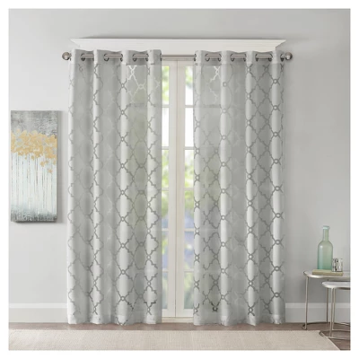 Stylish yet delicate, the Zoe Fretwork Burnout Sheer Panel will update and soften any room. The lightweight sheer fabric features a burnout fretwork design, for a dimensional and airy look. Finished with a grommet top detail making it easier to hang, open, and close panels throughout the day. Fits up to 1.25” diameter rod.